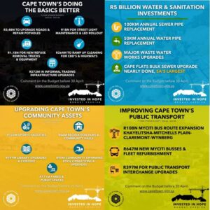 I hope this email has helped to demonstrate how the proposed budget will benefit our area and how you are helping to improve the lives of all Capetonians.