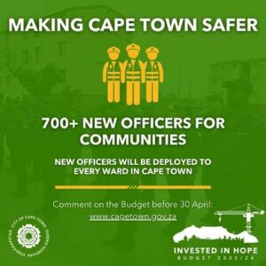 A third of the new officers will be used to escort our City staff to collect refuse, repair electricity outages or pipe bursts, and undertake road repairs. In a growing number of areas, our City service teams are unable to undertake their tasks due to being mugged at gun point, highjackings, and intimidation. It is a sad reality for which we need to allocate resources to ensure we do everything possible to move all of Cape Town forward.