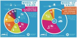 I’ve included two graphics to demonstrate how your rates and fixed contributions will be spent per rand of contribution across Cape Town.